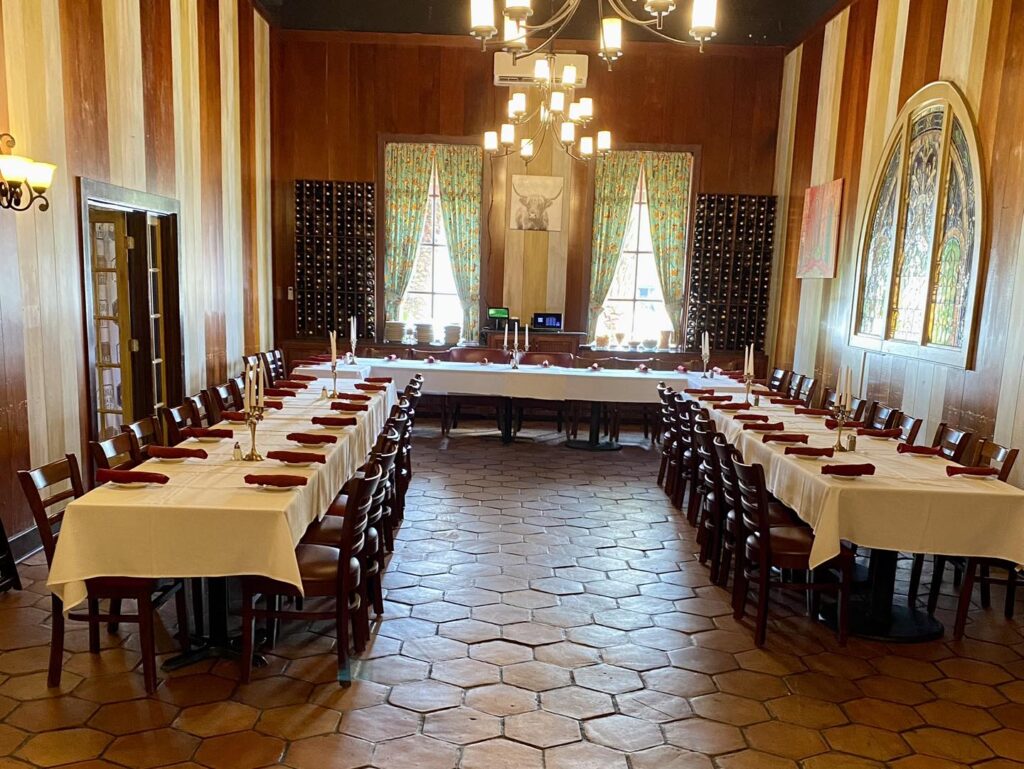 The 14,000 square-foot historic building that houses Carolina Seafood and Steak was built in 1969 and contains many beautiful remnants, salvaged from the former Ocean Forest Hotel – Myrtle Beach’s first hotel, that was demolished in 1974. The magnificent wooden arches, built in 1927, now divide the restaurant’s rooms, and the current bar fixtures were originally par of the the historic hotel. The stunning stained glass on the ceiling in the bar and the glass behind the bar were salvaged from a church in Spain.