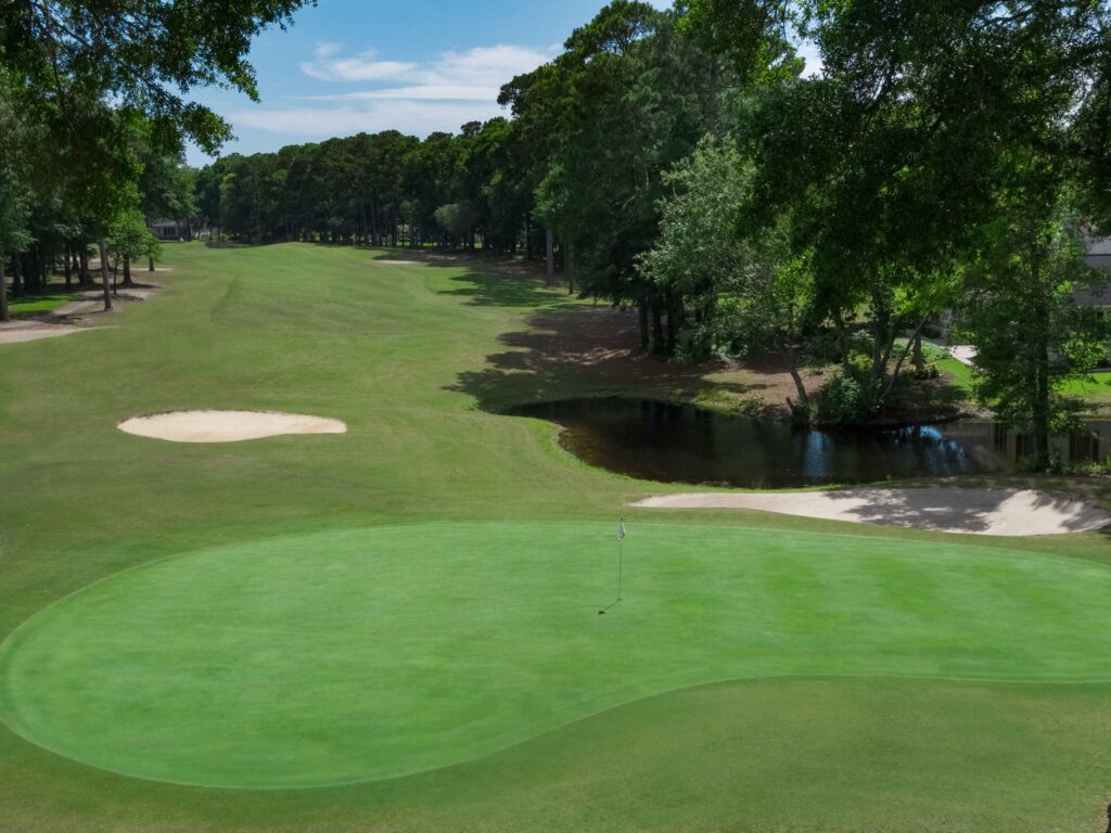 The Maples Course is a traditional southern course framed by twisted ancient oaks and tall Carolina pines. The medium-length, accuracy-demanding course features five holes that wind along the scenic Calabash Creek, with elaborate landscaping, and undulating greens. Still regarded as one of Maples’ finest, this is a beautiful par 72 course, with A1/A4 blended Bent grass greens. The course is also peppered with numerous waste bunkers, one of which extends the full length of a fairway. The course measures 6,797 yards from the blue tees; 6,330 yards from the white tees; 6,035 yards from the gold tees; and 5,110 yards from the red tees.
